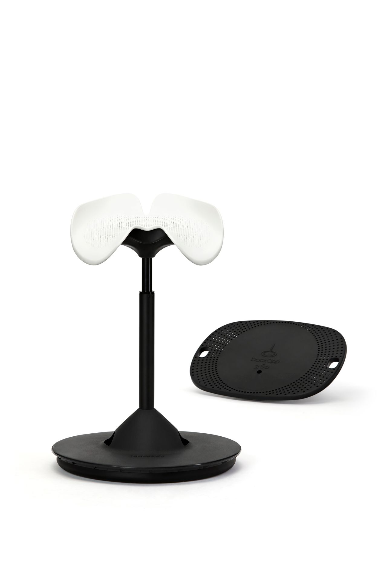 På Backapp Hipp sitter du med føttene på en fotplate polstret med et mykt dempemateriale. Sammen med bevegelsene som oppstår når du balanserer på den sentrale kula, fører dette til den gode komfortable følelsen du opplever mens du sitter. Det er en stol som gir deg noe ekstra.