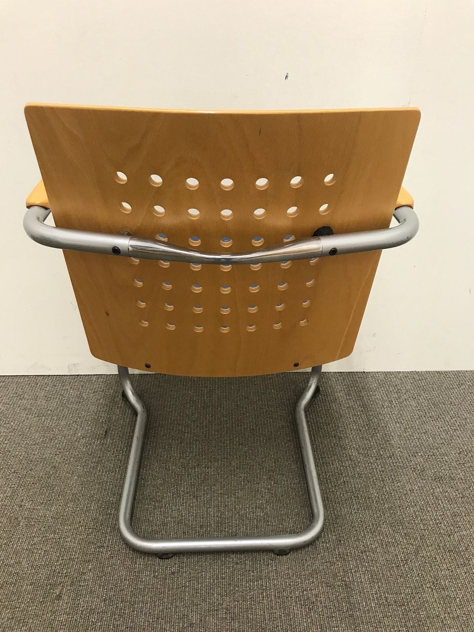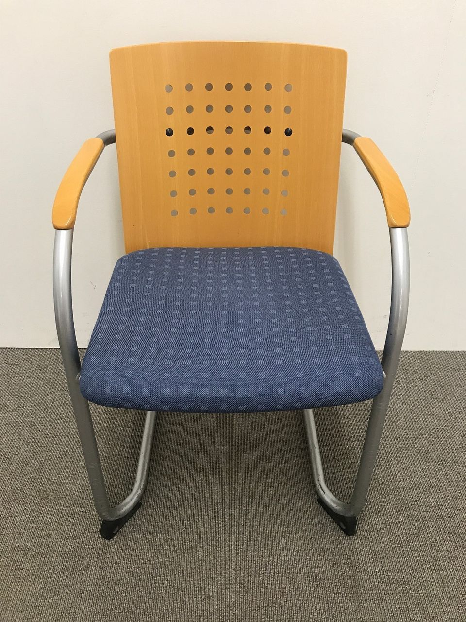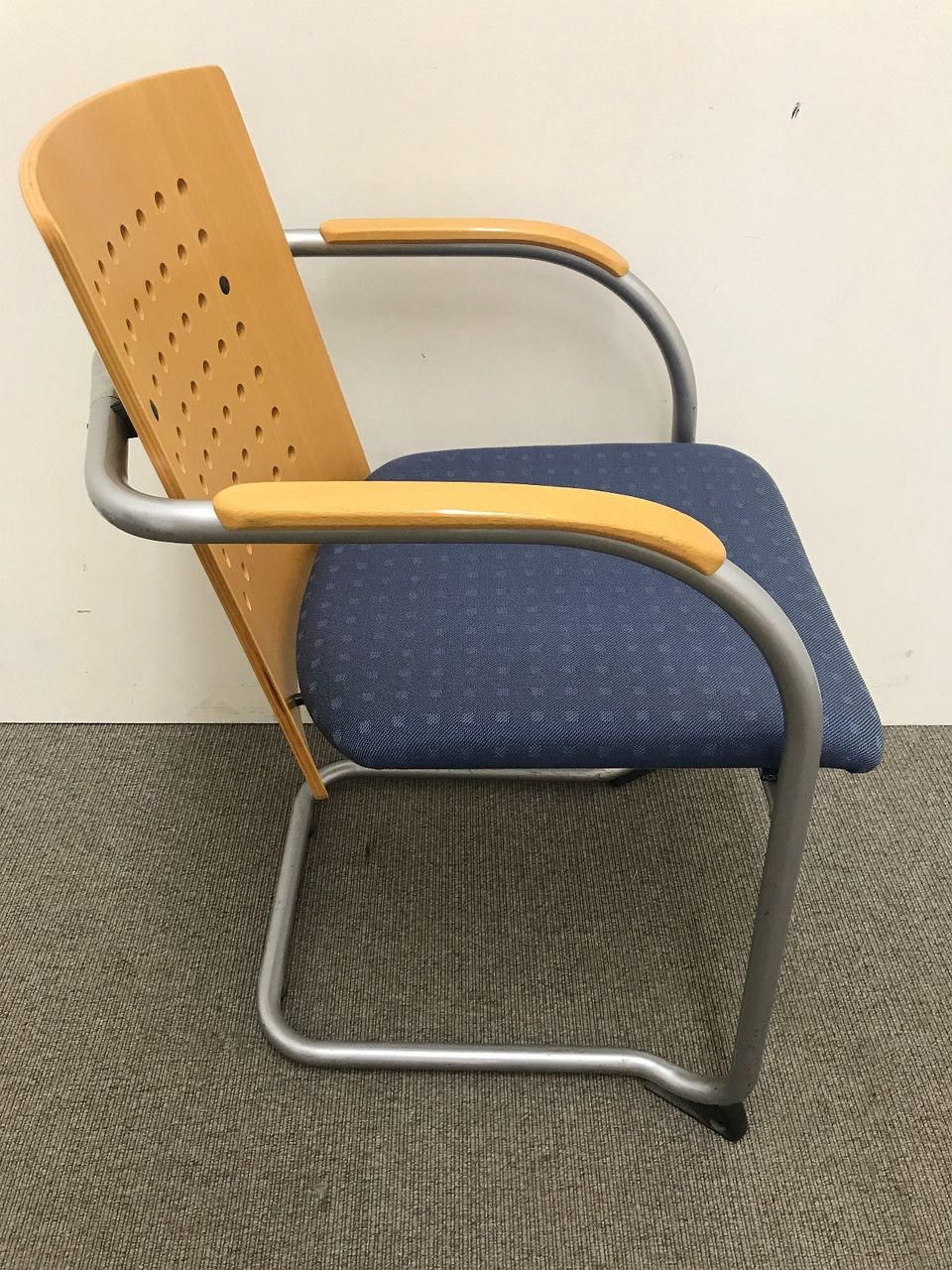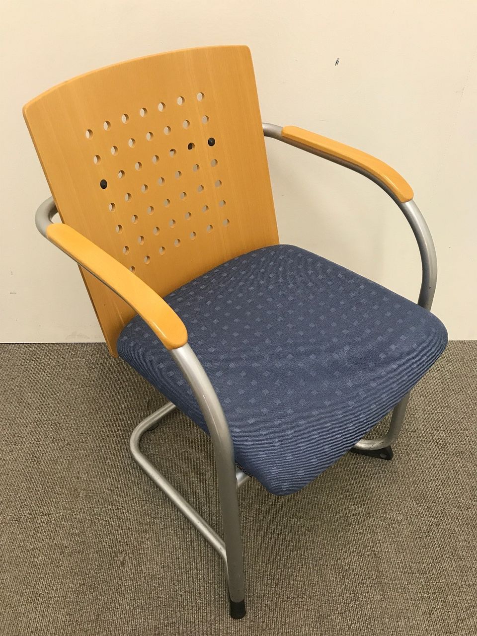 Konferansestol – besøksstol – møtestol. Stoff i sete og bøk rygg.