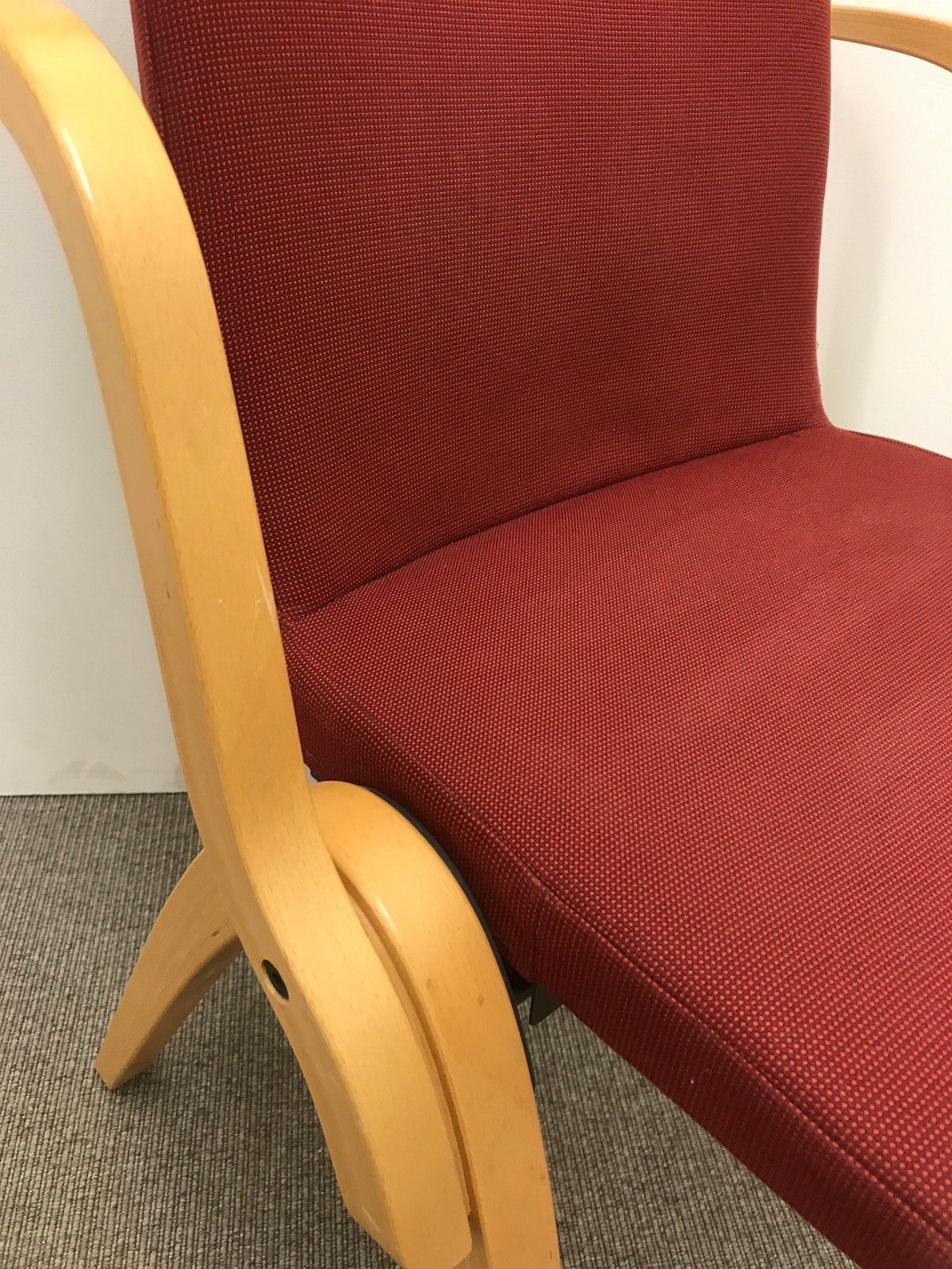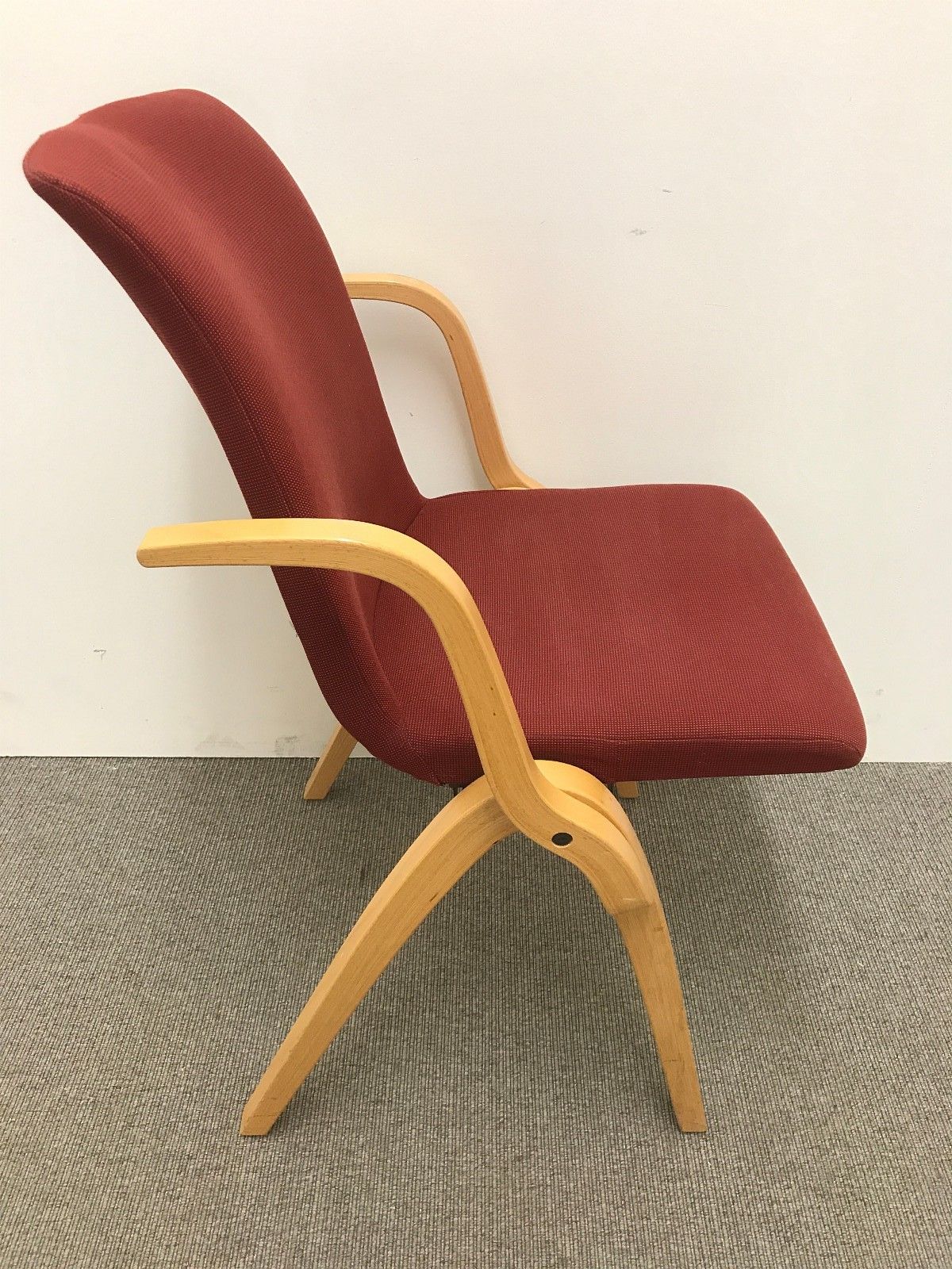 HÅG Conventio stol i bøk / rødt stoff. Den har også en vippe-funksjon for bedre sitte-komfort.