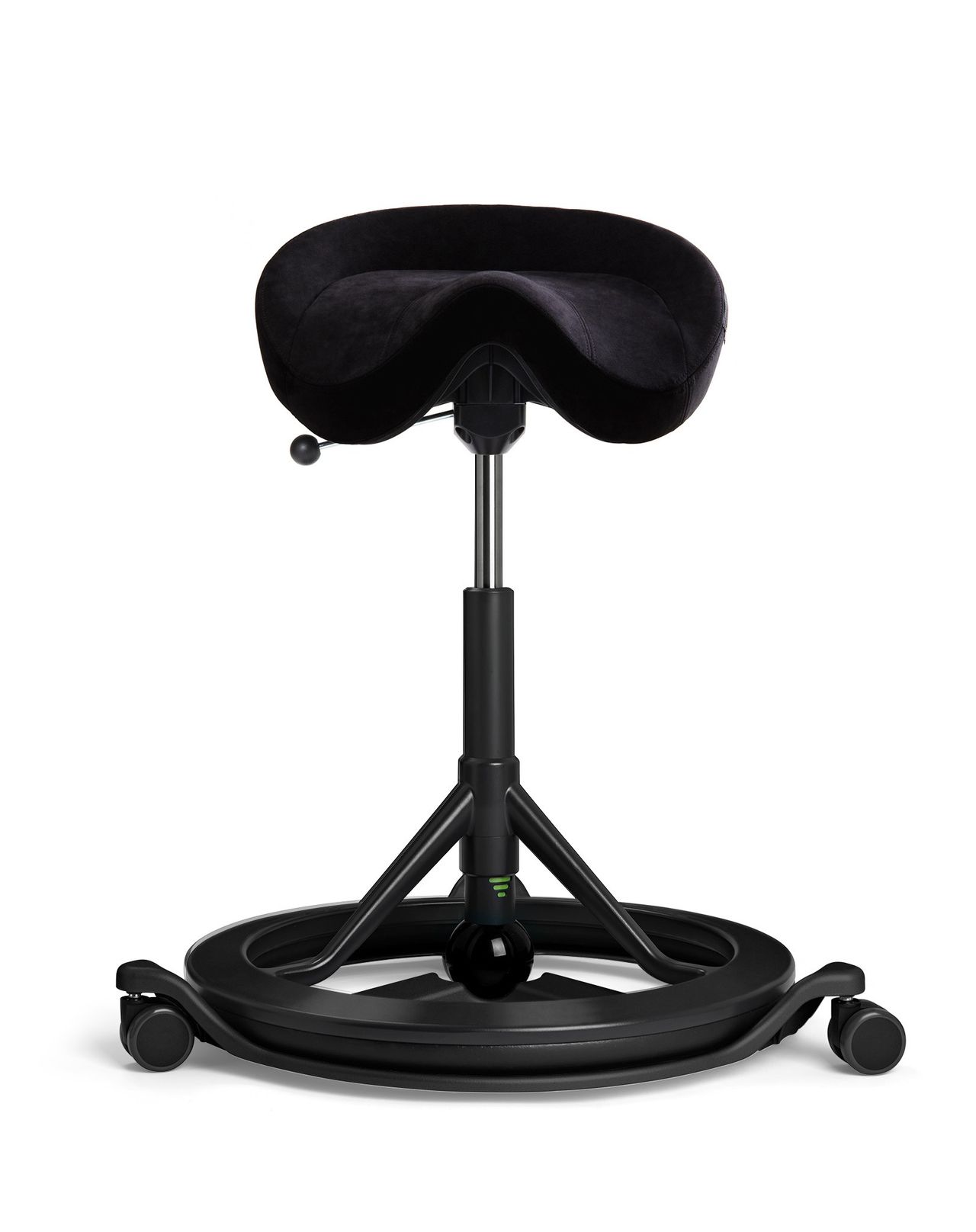 Bena er ikke fiksert i gulvet og stolen vipper seg rolig rundt en sentral akse når vi beveger oss.